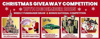 It means so much to us when you support our fundraiser … and every line in our fundraiser on 18th December 2025 has a chance to win our Jackpot of over €3,100 and has a FREE chance to win one of the best ever Christmas Giveaway Competition prizes. This nationwide competition is open to all supporters who have a ticket in a fundraiser run by our service provider ‘Our Grassroots Fundraiser’ and the prizes are A Disneyland Paris €5,000 holiday, Your Christmas Covered - €3,000 cash prize, a Mondello Park Adrenaline Supercar Experience for two, Take That – The Circus Live - two Premium Tickets, and a Luxury Christmas Hamper.
